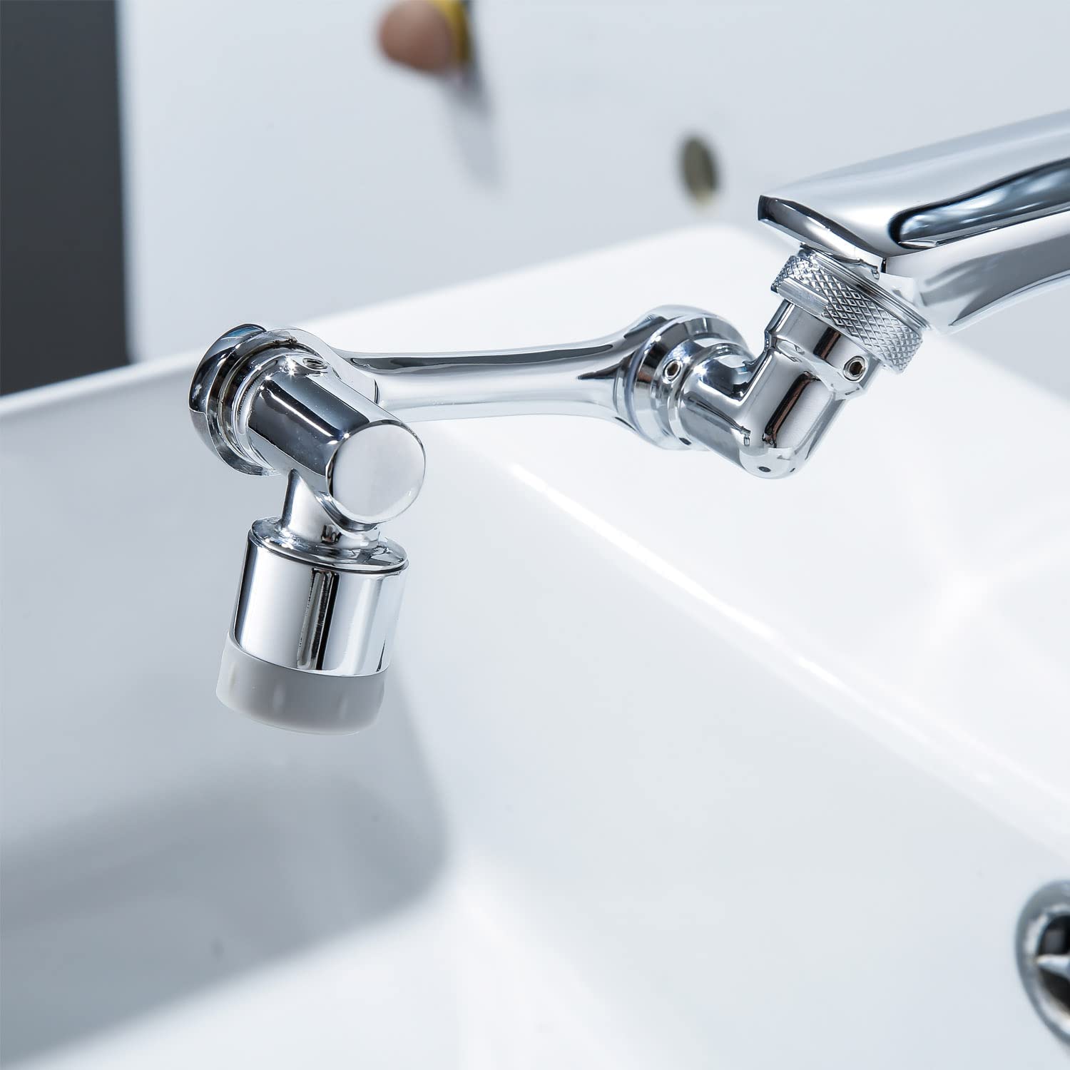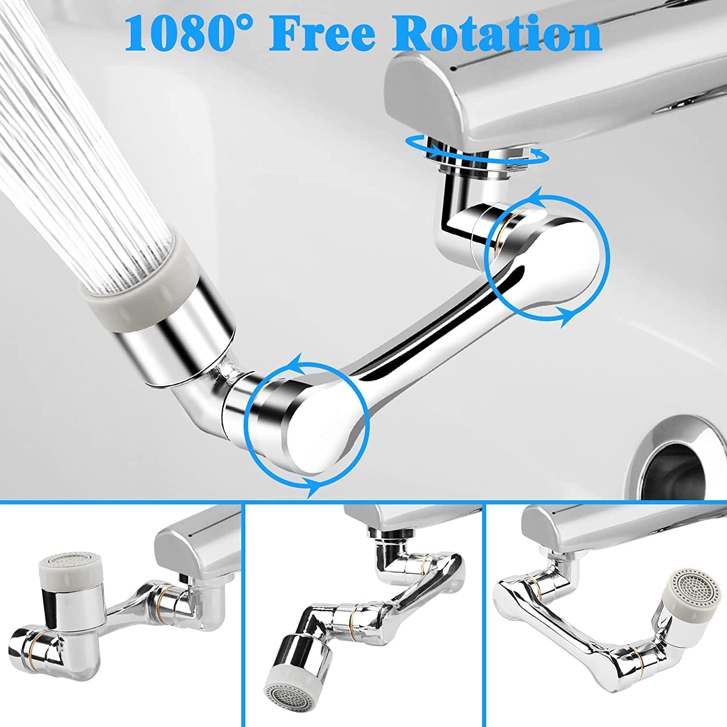 1080° Pivoting Channel Fixture Aerator : Kitchen/restroom sink sprayer connection has 3 joints revolution at 360 degree. Helpful for dish washing, difficult to-arrive at corner sink cleaning. Free your hands in face/eye washing, tooth brushing and hair washing. Great channel parts brings cleaner water. Add wellspring impact to bowl tap, children would be cheerful arriving at hands under bubble splash