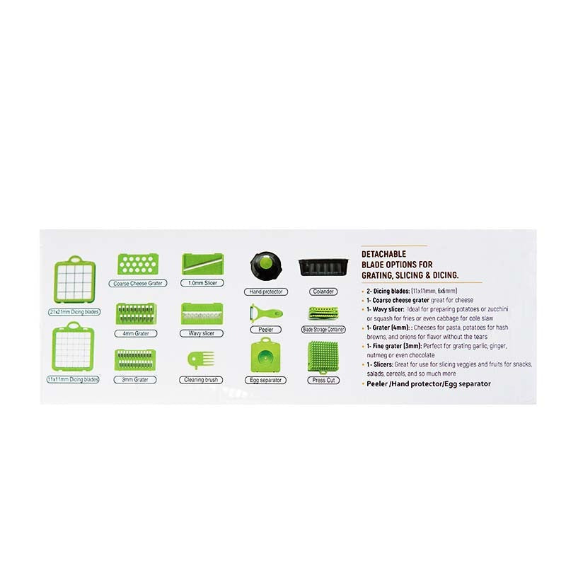 This 16 in 1 Vegetable Cutter provides a multifunctional cutting solution with its 7 interchangeable stainless steel blades. With this convenient tool, you can easily chop, cube, julienne, and grate fruits and vegetables. It boasts a heavy-duty design, making it an indispensable kitchen accessory for professional chefs and home cooks alike.